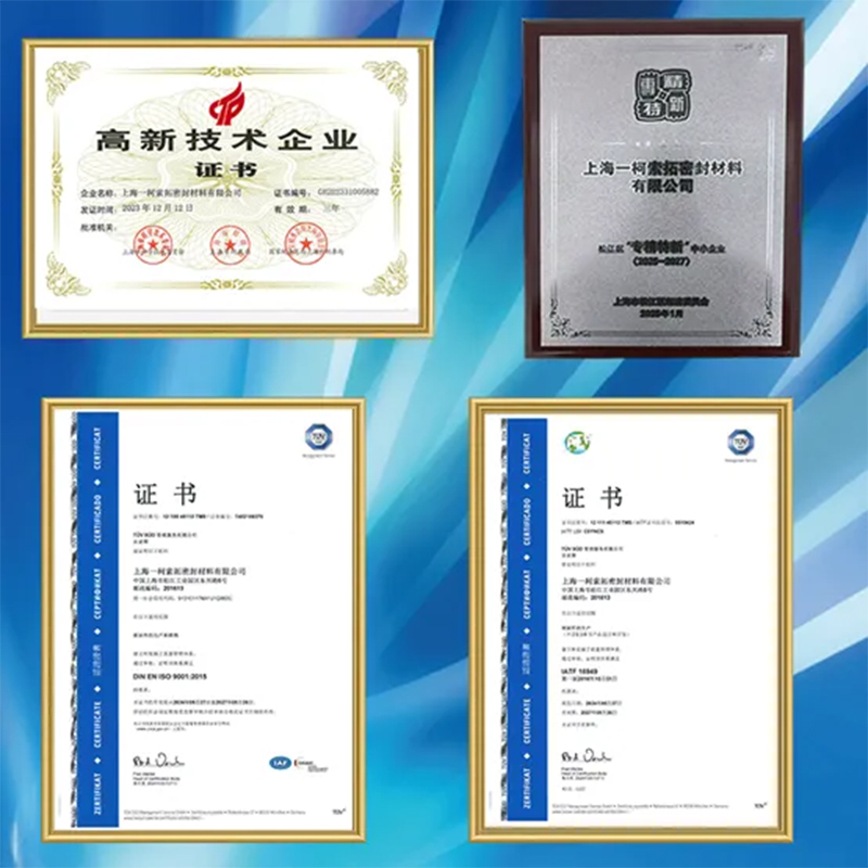 上海一柯索拓密封材料有限公司,作為高新技術企業和專精特新認證單位,長期致力于各行業用100%無石棉環保密封墊片和耐高溫隔熱產品的生產與銷售。公司通過ISO9001、IATF16949、ISO14001、ISO45001體系認證,并取得GC特種設備制造許可證。可協助客戶進行密封失效分析,如FUJI測試和有限元分析,密封墊的設計與選型。